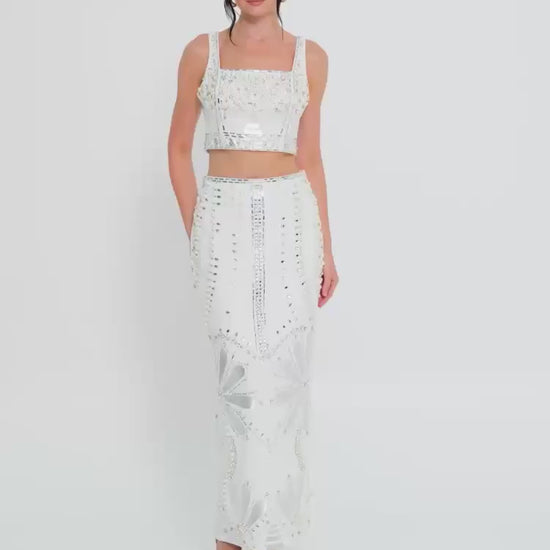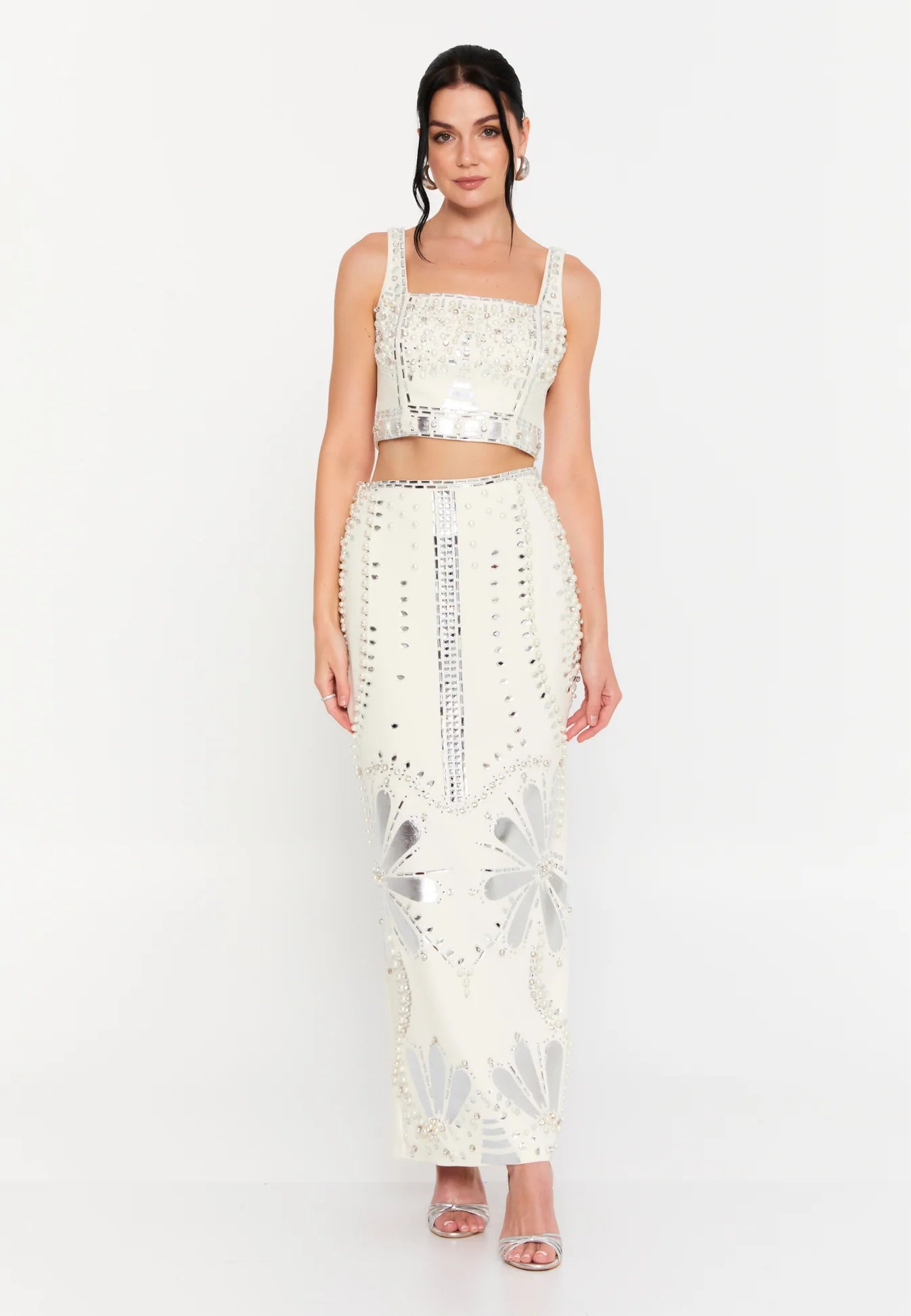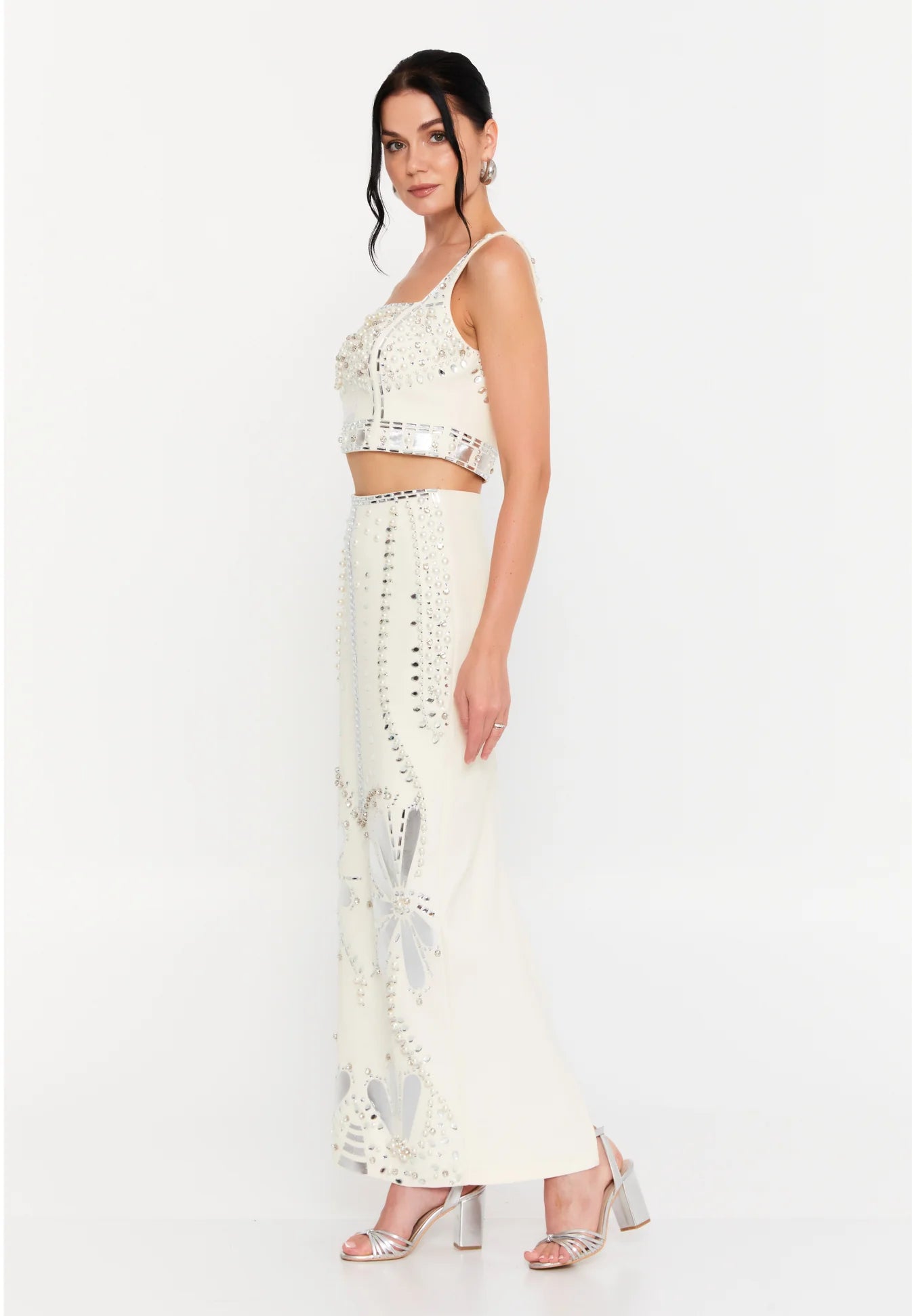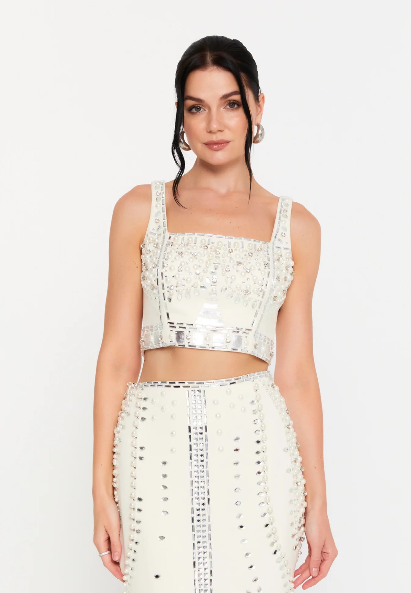 طقم قطعتين مرصع باللؤلؤ والكريستال